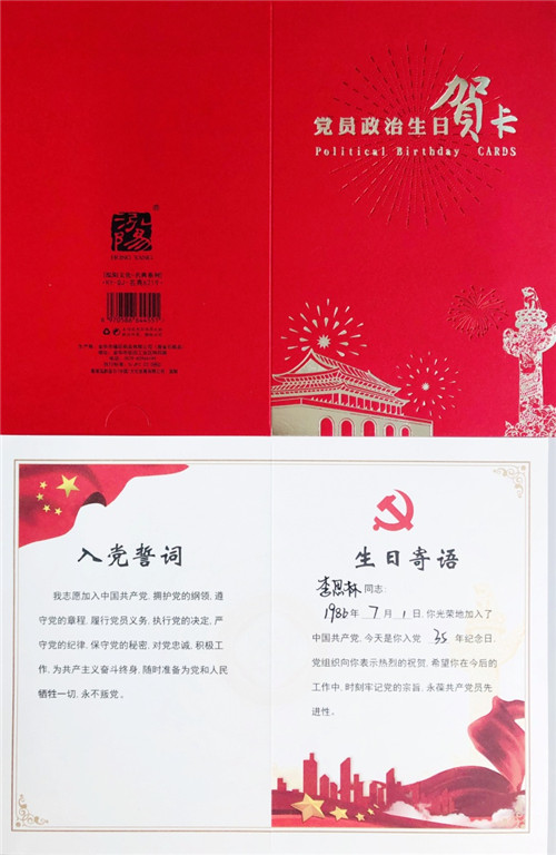 為慶祝中國共產(chǎn)黨成立100周年,回顧黨的百年光輝歷程,謳歌黨的豐功偉績,唱響新時代主旋律,激勵黨員干部職工不忘初心、牢記使命、永遠奮斗,為推動公司高質(zhì)量發(fā)展作出新貢獻,按照山東國投公司黨委及華特集團公司黨委要求,華特機關黨支部于2021年6月18日15:00在公司A415會議室召開“過政治生日,不忘初心使命”主題黨日活動。 黨的十九大報告指出“不忘初心,方得始終。中國共產(chǎn)黨人的初心和使命,就是為中國人民謀幸福,為中國民族謀復興”。通過開展“過政治生日,不忘初心使命”的主題黨日活動讓廣大黨員不忘入黨初心,強化黨員黨性意識,進一步增強黨組織的向心力和凝聚力。 會議首先通過支部建立的《黨員“政治生日”冊》。確定了五位過政治生日的黨員,確保每個黨員都能過上“政治生日”,每個黨員都能過上一個有意義的“政治生日”,并贈送一份“政治生日”禮物。在黨員“政治生日”之際,黨支部負責向黨員贈送生日賀卡,并在賀卡上對過“政治生日”的黨員寫上希望和要求的寄語。對于即將退休的李思林同志,黨支部為其送上一份有意義的生日禮物,作為黨員“政治生日”的禮物。李思林同志也為大家上了退休前的最后一節(jié)黨課《走上黨課大講堂之機關支部黨活動組織實施案例分享》。