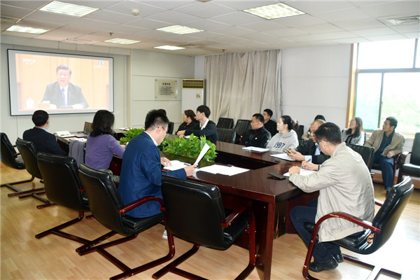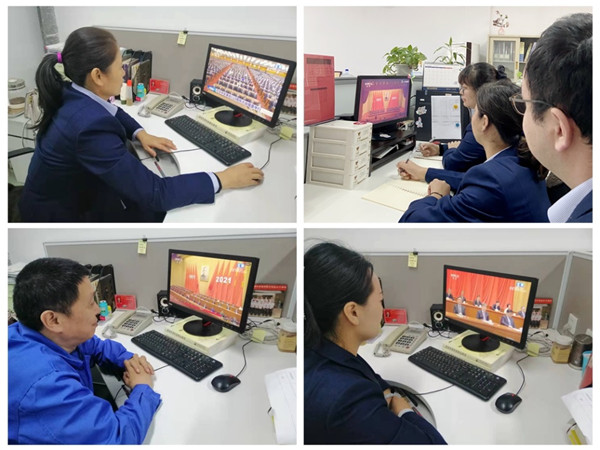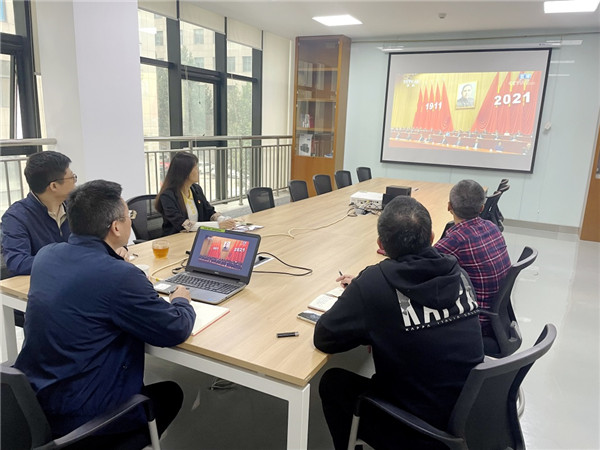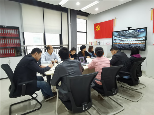 機(jī)關(guān)黨支部組織黨員、入黨積極分子在公司A415會(huì)議室集中收聽收看直播。