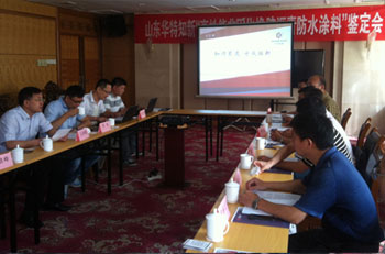 2014年8月8日,山東省住房和城鄉(xiāng)建設廳在濟南組織召開了山東華特知新化工有限公司“高性能非固化橡膠瀝青防水涂料”產(chǎn)品技術(shù)鑒定會,來自山東大學、濟南大學、山東省建筑科學研究院、山東省化工研究院、山東省標準設計辦公室等部門的七位專家擔任此次鑒定會評審委員會委員。山東省住房和城鄉(xiāng)建設廳科技教育處處長王潤曉、副處長張洪峰參加了鑒定會。