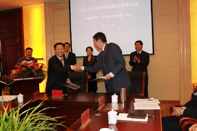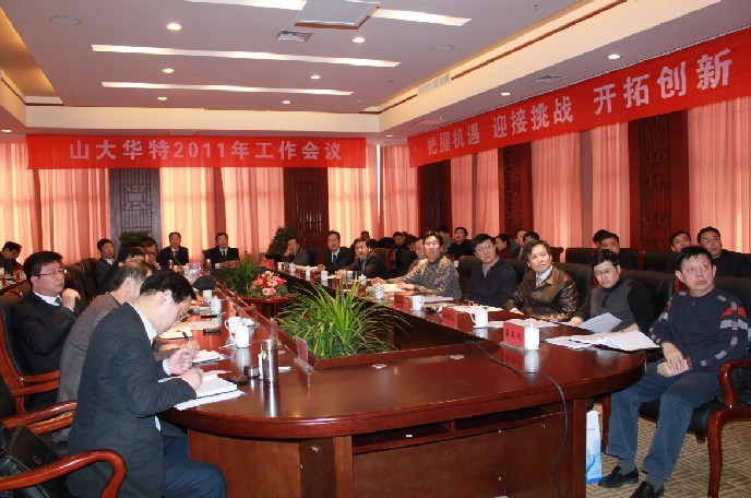 山大華特2011年工作會(huì)議隆重召開 2011年2月19日至20日,以“把握機(jī)遇、迎接挑戰(zhàn)、開拓創(chuàng)新、加快發(fā)展”為主題的山大華特2011年工作會(huì)議在沂南隆重召開。董事長(zhǎng)張兆亮、總裁楊為清出席會(huì)議并作重要講話,會(huì)議由常務(wù)副總裁姚廣平主持,公司中層及以上管理人員50余人參加了會(huì)議。 董事長(zhǎng)張兆亮在講話中指出,2010年公司在經(jīng)營(yíng)業(yè)績(jī)提升、達(dá)因廠區(qū)建設(shè)、遺留問題處理等多個(gè)方面、多項(xiàng)重要工作都取得了突破性的進(jìn)展。成績(jī)來之不易,值得認(rèn)真總結(jié),公司上下敬業(yè)勤奮、執(zhí)著、進(jìn)取的精神需要發(fā)揚(yáng)光大。2011年公司發(fā)展面臨巨大壓力和挑戰(zhàn),公司要匯聚力量,應(yīng)對(duì)挑戰(zhàn),要繼續(xù)加強(qiáng)包括財(cái)務(wù)管理、制度建設(shè)、招投標(biāo)管理、銷售管理等各項(xiàng)工作,提高運(yùn)營(yíng)質(zhì)量;要通過企業(yè)文化建設(shè)增強(qiáng)員工的主人翁意識(shí),創(chuàng)造有利于員工成長(zhǎng)的機(jī)制和環(huán)境,獎(jiǎng)勵(lì)先進(jìn),鞭策落后,增強(qiáng)凝聚力、向心力來應(yīng)對(duì)這些壓力和挑戰(zhàn),實(shí)現(xiàn)公司持續(xù)快速發(fā)展。 總裁楊為清做了題為《把握機(jī)遇、迎接挑戰(zhàn)、開拓創(chuàng)新、加快發(fā)展》的工作報(bào)告,對(duì)公司2010年度的工作進(jìn)行了全面回顧,對(duì)存在的問題進(jìn)行了深入分析,對(duì)2011年的工作進(jìn)行了認(rèn)真部署。公司在2010年按照“創(chuàng)新求發(fā)展,拼搏鑄輝煌”的總體工作方針,落實(shí)公司發(fā)展戰(zhàn)略;通過技術(shù)創(chuàng)新努力提升現(xiàn)有產(chǎn)品的競(jìng)爭(zhēng)力,尋找新的利潤(rùn)增長(zhǎng)點(diǎn);通過管理創(chuàng)新提升管理效率降低管理成本;通過弘揚(yáng)和倡導(dǎo)團(tuán)結(jié)拼搏積極向上的企業(yè)文化,不斷提升團(tuán)隊(duì)凝聚力、戰(zhàn)斗力,激發(fā)團(tuán)隊(duì)干事創(chuàng)業(yè)的激情。公司2011年的工作以“把握機(jī)遇,迎接挑戰(zhàn),開拓創(chuàng)新,加快發(fā)展”為指導(dǎo)思想,進(jìn)一步明晰發(fā)展思路,梳理產(chǎn)業(yè)結(jié)構(gòu),加大技術(shù)創(chuàng)新力度,以內(nèi)涵發(fā)展為主,圍繞主業(yè),整合資源,培育發(fā)展新的利潤(rùn)增長(zhǎng)點(diǎn),保持公司持續(xù)成長(zhǎng)態(tài)勢(shì),以嶄新的姿態(tài)迎接公司上市十周年。 會(huì)上,各經(jīng)營(yíng)單元認(rèn)真總結(jié)了2010年的主要工作及取得的成績(jī),深入剖析自身存在的問題及不足,對(duì)2011年及今后的工作進(jìn)行了安排,并與公司簽訂了2011年度經(jīng)營(yíng)管理目標(biāo)責(zé)任書。 會(huì)議對(duì)公司2010年度先進(jìn)集體及個(gè)人進(jìn)行了表彰,達(dá)因藥業(yè)獲得“明星企業(yè)”榮譽(yù)稱號(hào),物業(yè)公司、環(huán)保分公司、環(huán)保工程公司獲得“先進(jìn)集體”榮譽(yù)稱號(hào),毛軍勛等37人被評(píng)為先進(jìn)工作者。會(huì)議通報(bào)了子公司高管任職情況,聘任了有關(guān)管理人員。 本次會(huì)議主題鮮明,內(nèi)容充實(shí),富有成效。與會(huì)人員一致表示,要以更高的責(zé)任感和使命感,以更加務(wù)實(shí)的態(tài)度和更加勤奮的精神,滿懷信心做好2011年的各項(xiàng)工作,推動(dòng)公司的持續(xù)快速發(fā)展。